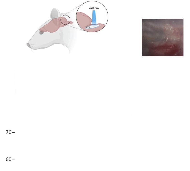 In vitro and in vivo Optogenetics: Using adeno-associated viruses, we can express channels that respond to blue light directly in respiratory regions of the nTS. We then can alter the activity within the nTS, increase breathing, and address our questions about how Alzheimer's impairs the respiratory system.