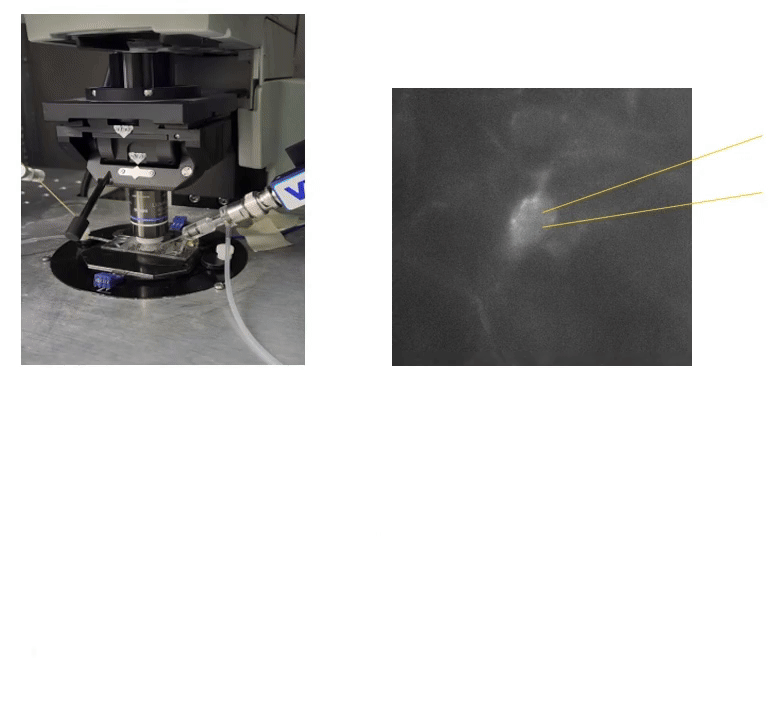Patch clamp recordings in the brain slice allow us to see neuronal activity in various structures of the brain. A main focus of the Ostrowski laboratory is the nucleus tractus solitarii, a brainstem region that is integral for the control of respiration, blood pressure, and many other physiological functions. Using this technique we are able to analyze network activity of the nucleus, synaptic transmission, as well as the spiking activity and membrane properties of individual neurons.